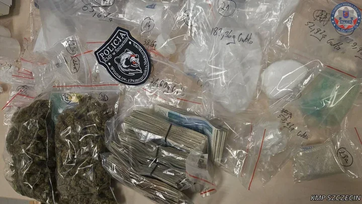 W trakcie przeszukania szczecińscy policjanci zabezpieczyli blisko 1700 gramów amfetaminy, prawie 200 gramów THC, tabletki o nieznanym składzie chemicznym i ponad 55 tysięcy złotych w gotówce. Zatrzymany mężczyzna usłyszał zarzut związany ze значzną ilością środków odurzających i substancji psychotropowych, a sąd zdecydował o jego trzymiesięcznym areszcie.