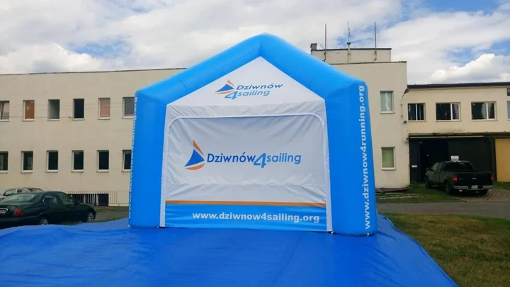 Przykładem udanego dopasowania jest realizacja dla Dziwnów4sailing – jasnoniebieski namiot z brandingiem organizacji naturalnie komponuje się z otoczeniem, a kolorystyka nawiązuje do żagli i morza. Jak tłumaczą producenci reklam pneumatycznych Inflandia (wykonawcy tego projektu): “Konsumenci nauczyli się ignorować tradycyjne banery. Konstrukcje przestrzenne przełamują tę obojętność, szczególnie gdy są spójne tematycznie z wydarzeniem.”