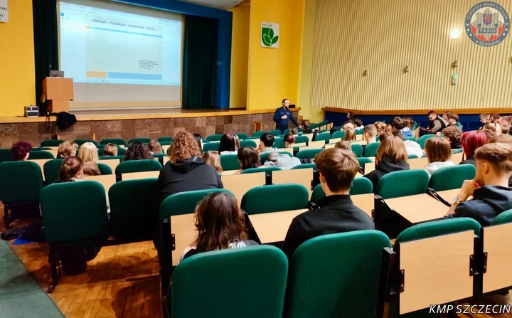 W Katedrze Wydziału Kształtowania Środowiska i Rolnictwa ZUT w Szczecinie policjant z Komendy Miejskiej Policji w Szczecinie stanął przed studentami pierwszego roku z jasnym przekazem - środki psychoaktywne niosą nie tylko ryzyko dla zdrowia, ale też poważne konsekwencje prawne. Spotkanie miało charakter profilaktyczny, ale jego temat należał do najpoważniejszych.