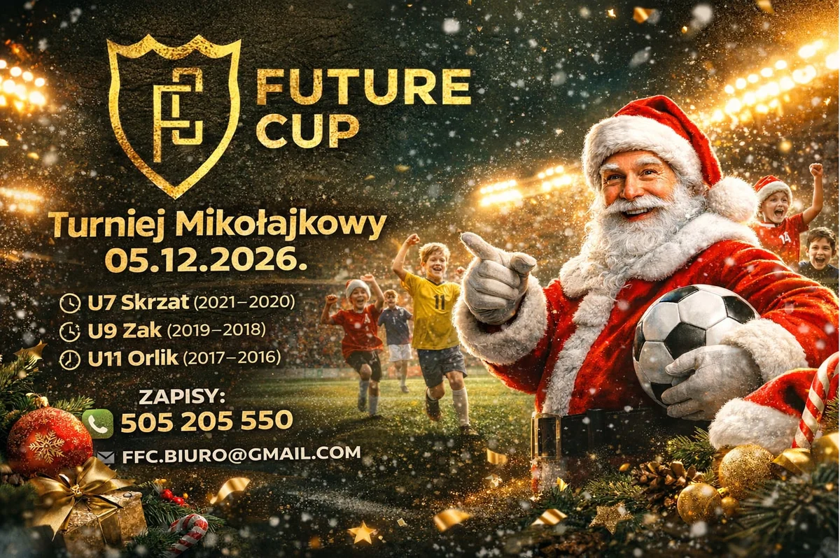 W Szczecinie szykuje się naprawdę sportowy start grudnia Future Santa Cup 2026 to mikołajkowy turniej dla dzieci, który łączy piłkarskie emocje, muzykę, dużo grania i atmosferę dużego wydarzenia. 5 grudnia stadion przy Witkiewicza zamieni się w miejsce pełne kibicowania, medali i dziecięcej radości — warto mieć ten termin na radarze.
