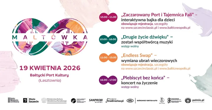 Bałtycki Port Kultury na Łasztowni na jeden dzień zamieni się w miejsce, gdzie muzyka klasyczna wyjdzie poza utarte schematy . Maltówka to bardziej miejska, swobodna odsłona festiwalu Szczecin Classic — z bajką dla dzieci, dźwiękową zabawą, modową wymianą i koncertem, przy którym publiczność sama decyduje o przebiegu wydarzenia. Warto zajrzeć, jeśli chcesz zobaczyć klasykę w mniej oczywistym, bardziej otwartym wydaniu.